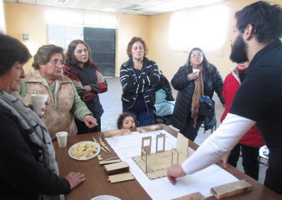 Se tomó como población objetivo a cinco familias de la Villa Los Álamos (La Florida) y el eje de trabajo fue la lógica comunitaria, considerando las organizaciones sociales de base como apoyo para la gestión del proyecto y para la autogestión de recursos. La participación activa de las familias en todo el proceso fue clave para la obtención de resultados exitosos.